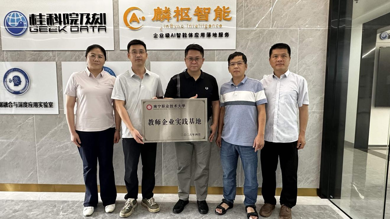 4月27日下午,南宁职业技术大学软件与大数据专业教学团队走访了广西麟枢智能网络科技有限公司,就校企协作相关事宜进行调研交流,并在公司挂牌建立教师企业实践基地。在座谈研讨环节,校企双方人员围绕专业建设、人才培养、教师实践及技术合作等方面进行了细致探讨。企业技术负责人结合当前人工智能行业的技术迭代趋势和企业用人标准,对学院的人才培养方案修订、实训体系搭建以及“双师型”教师培养提供了参考思路。学院团队也...