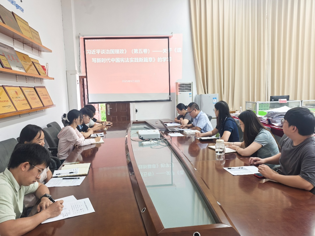 活动伊始,党支部书记围绕文献核心内容展开解读,强调我国宪法 “同党和人民进行的艰苦奋斗和创造的辉煌成就紧密相连”,系统梳理了从革命根据地宪法性文件到现行宪法颁行的发展历程,重点阐释了新时代十年宪法实践的重大成效,以及 “坚持依法治国首先要坚持依宪治国” 的深刻内涵。