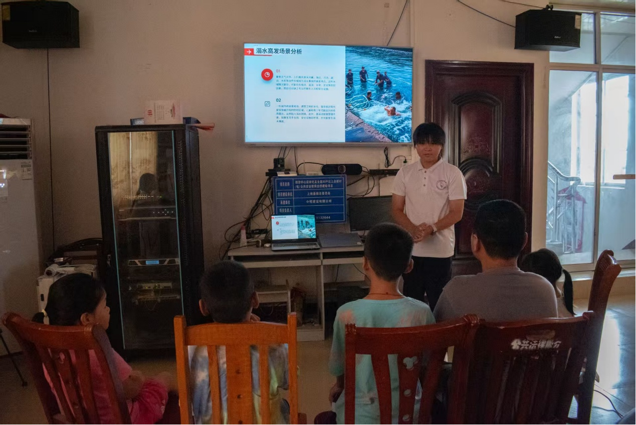 首先,实践团在村委会议室中为儿童这类重点群成员开展防溺水小课堂,用真实事例来提高孩子们的警惕意识,提醒孩子们牢记“三不”。随后集合动画视频讲解,提醒孩童“如果溺水应该如何自救”“如果遇到溺水者应该如何施救”。本次课堂,通过生动形象的讲解与互动,为村里的青少年和儿童筑牢防溺水安全防线。