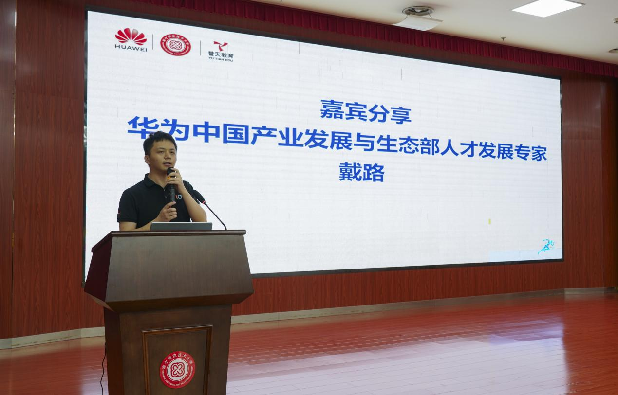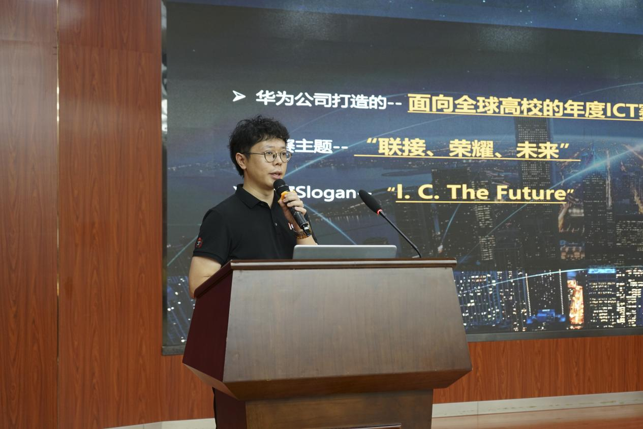 会上,南宁职业技术大学副校长胡卫东在致辞中强调,学校作为国家“双高计划”建设单位、全国领先级华为ICT学院,长期致力于ICT领域高素质技术技能人才培养。近年来,学校与华为深度合作,搭建“课程—认证—竞赛—实习”一体化人才培养模式,已累计培养千余名华为认证人才,并在往届ICT大赛中屡获全球特等奖等。他表示,学校将全力做好赛事服务保障,通过“以赛促学、以赛促教”,为广西数字经济发展输送更多“用得上、留得住、能发展”的ICT专业人才。华为广西副总经理田永生则回顾了华为ICT大赛九年的发展历程,指出该赛事已成为全球高校ICT领域最具影响力的赛事之一,特别提到第十届大赛首次纳入广西教育厅学科竞赛榜单,这是广西在ICT人才培养方面重视与突破的重要体现,同时他对南宁职业技术大学的承办能力给予高度认可。此外,华为广西人才生态总监彭梓洋详细介绍了本届大赛的赛道设置,覆盖网络、云、基础软件、昇腾AI、仓颉编程等前沿技术方向,还讲解了赛程安排及报名方式;华为中国产业发展与生态部人才发展专家戴路深入解读“职业认证与云认证成长专项计划”,华为还同步推出开发者布道师计划、人才双选平台等支持措施助力学生成长就业。互动交流环节中,学生围绕大赛报名、仓颉编程语言应用、认证考试准备等话题踊跃提问,华为专家耐心解答,现场气氛热烈。南宁职业技术大学人工智能学院李旻璐老师作为优秀指导教师代表,分享了带队参加第九届华为ICT大赛全球总决赛的经验,强调比赛是技术比拼,更是团队协作、工程实践与创新能力的综合锻炼,鼓励学生勇于挑战。
