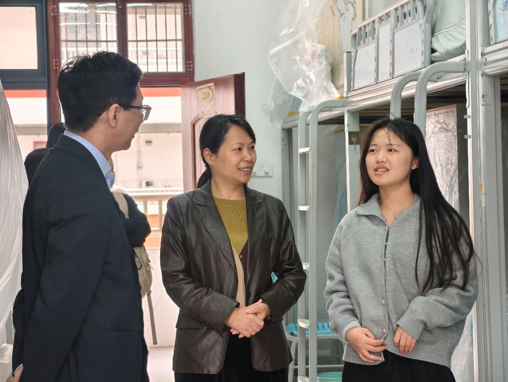 走访过程中,学院领导与同学们亲切交谈,详细询问了大家的假期生活、返校适应情况及新学期的学习规划。叮嘱同学们要及时调整作息,以饱满的精神状态投入新学期的学习生活,并强调了宿舍安全用电、防火防盗等注意事项,同时了解毕业生同学们就业进展,鼓励同学们明确目标、积极行动。