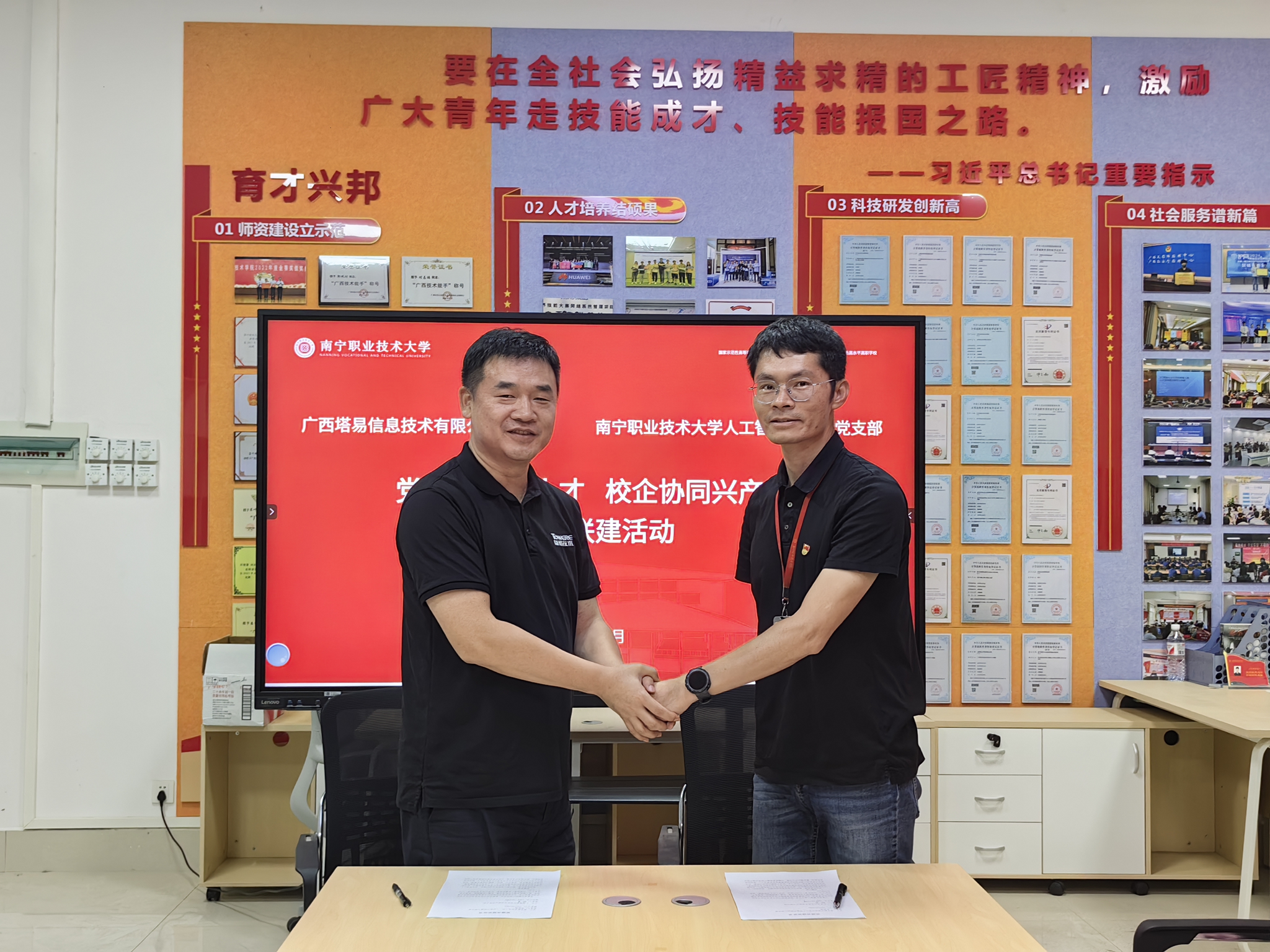 7月21日,我院教工党支部与广西塔易信息技术有限公司党支部举行了“党建引领育人才 校企协同兴产业”党建联建活动。教工党支部书记邓启润、塔易公司党支部书记张冲以及双方支部党员出席活动。