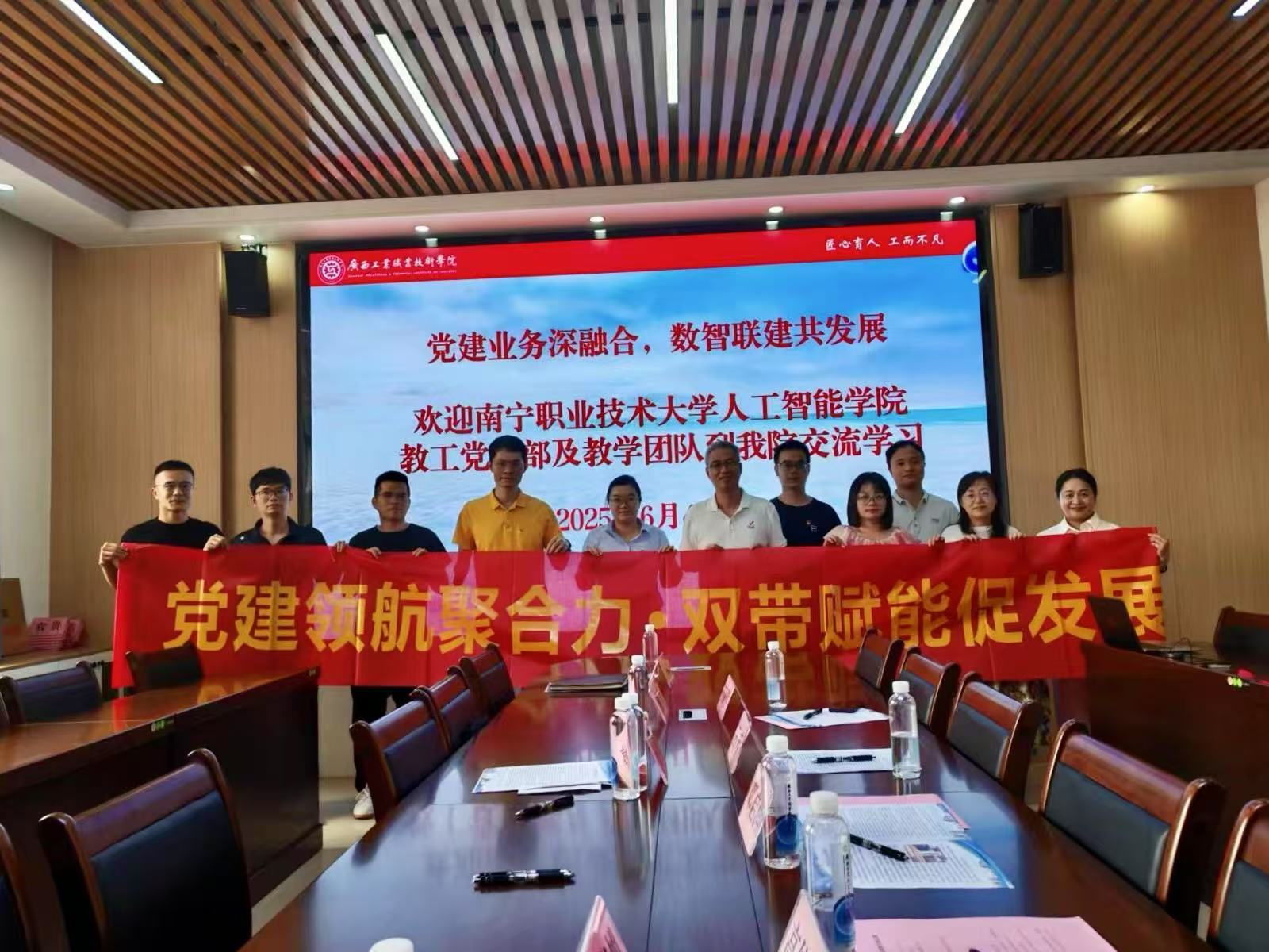 为强化党建引领,深化校际合作,赋能高水平专业群建设,6月10日,南宁职业技术大学人工智能学院教工党支部“双带头人”工作室团队赴广西工业职业技术学院开展“党建领航聚合力 双带赋能促发展”主题党日活动。交流活动以“党建引领、业务协同”...